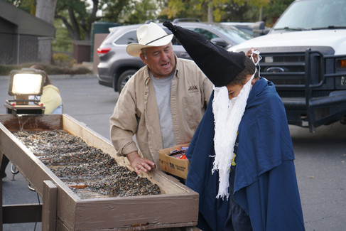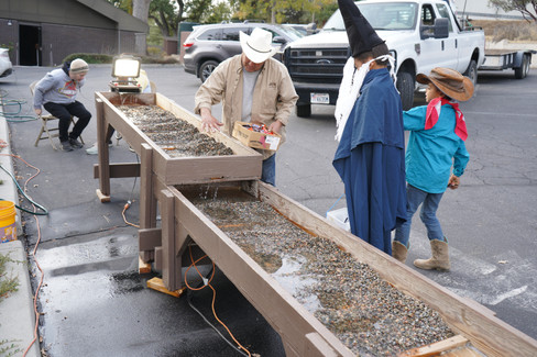 supervising a sluice box where children are looking for gemstones in the