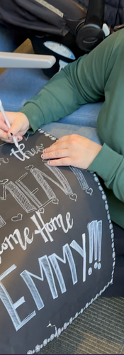 The flight was half an hour early, and we were 10 mins late, but there's a lot of time between landing and getting to the exit gate where our great reunion would take place, so we got to see her come down the long long corridor and then excitement erupted.
